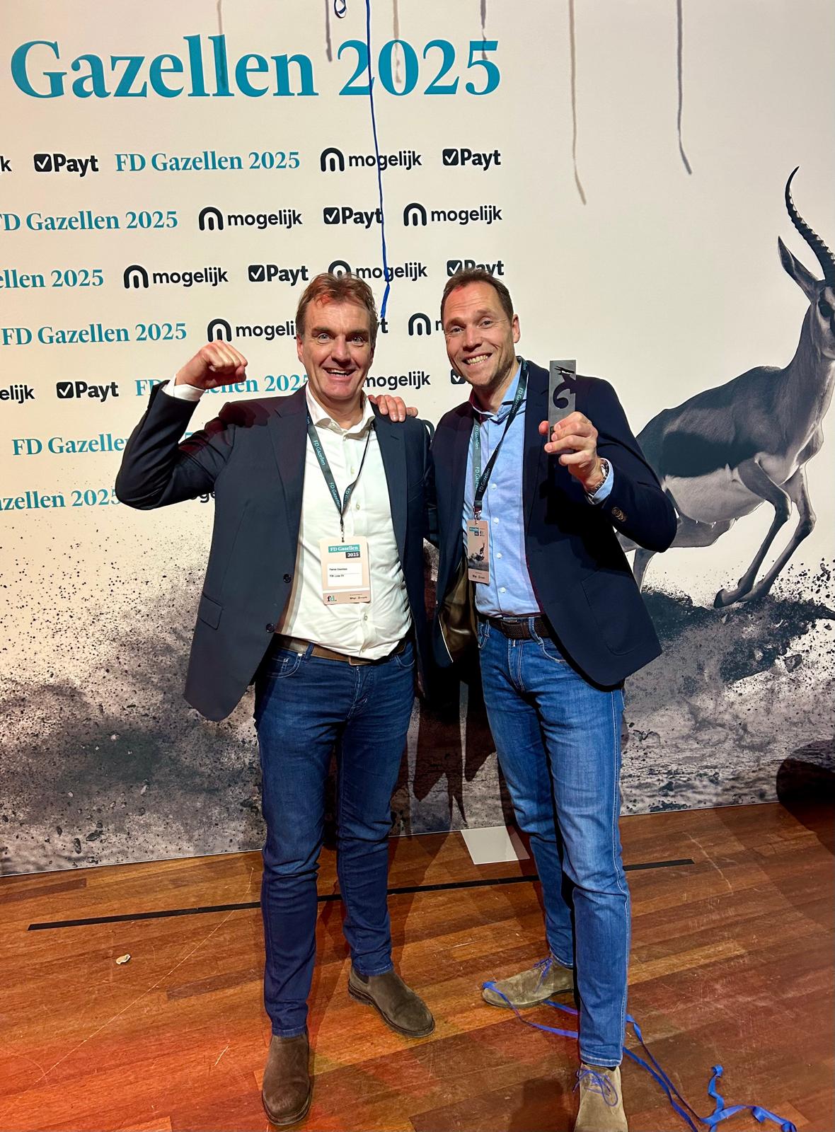 Foto: Patrick en Gerben nemen de gouden Gazelle in ontvangst
